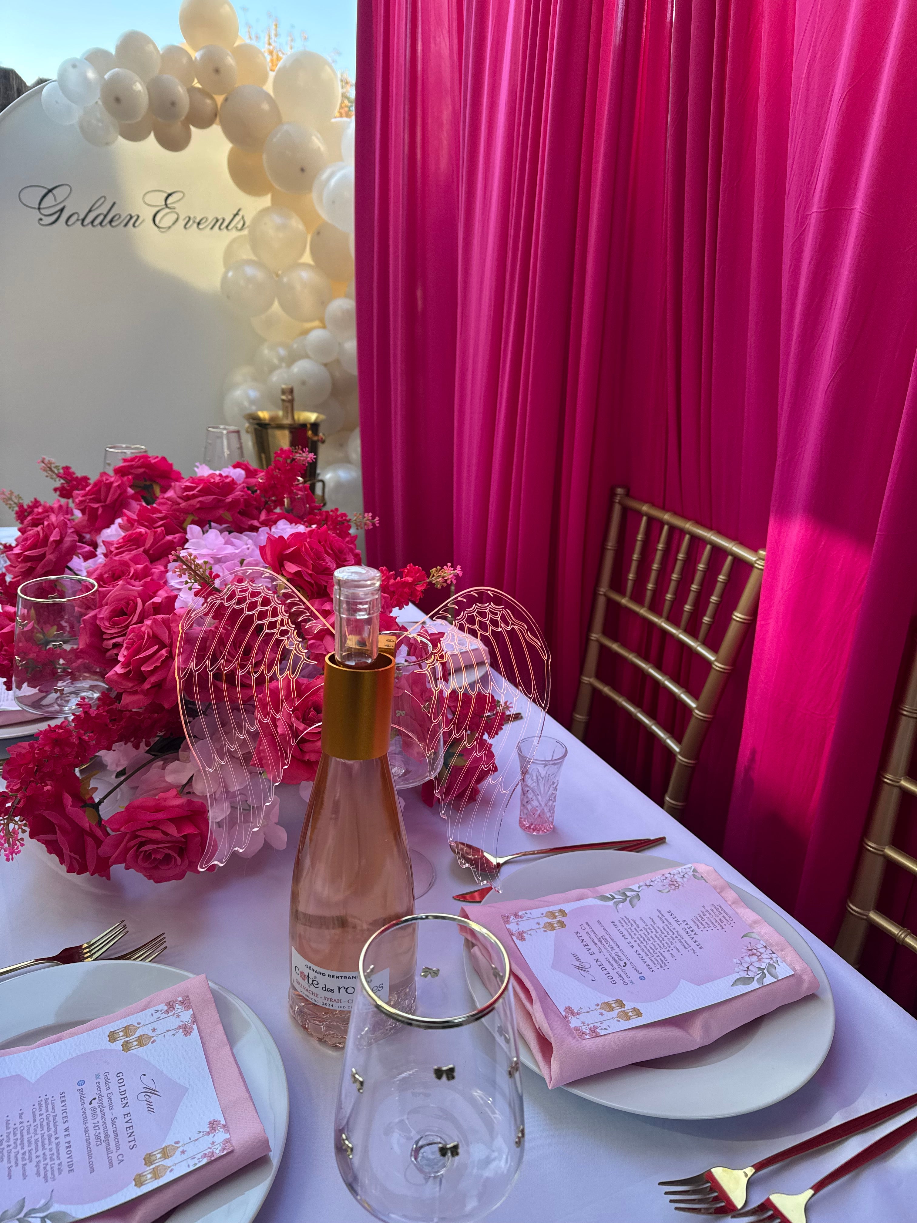 Golden Events specializes in intimate, luxury event styling for homes, backyards, and private locations. We are a mobile service, meaning we come to you and handle setup and cleanup so you can enjoy your event stress-free.